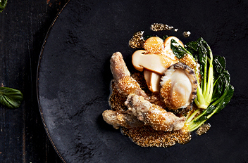 浸泡完成的乾海參再經過發酵,然後裹上一層澱粉下鍋短暫油炸撈起瀝油。最後淋上飛魚籽醬汁即完成。此道「南風」特有的招牌菜,外皮酥脆,內餡柔嫩,口感獨特。