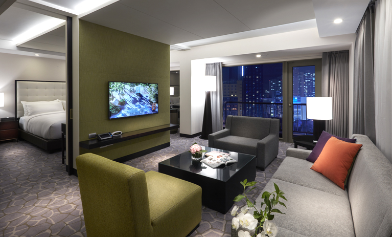 心地よいベッドルームとエレガントなリビングで、優雅な休息をお過ごしいただけるスウィートルーム