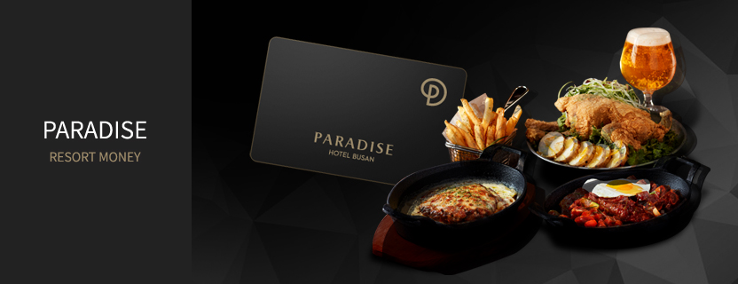 호텔의 마일리지 포인트와는 별개의 서비스로 숙박기간 동안 호텔 레스토랑에서 자유롭게 결제할 수 있도록 고객에게 미리 지급해 현금처럼 사용할 수 있도록 객실 키 카드에 적립해 드리는 파라다이스호텔 부산의 전용 리조트 머니를 말합니다.