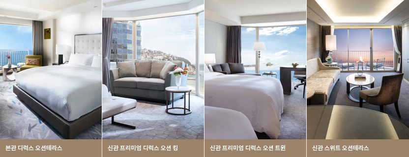 디럭스 (시티 / 오션 / 오션 테라스) 모던하면서도 세련된 최신 트렌드의 인테리어가 돋보이는 객실 프리미엄 디럭스 오션 킹 해운대 해변의 아름다운 해안선을 만끽할 수 있는 객실 프리미엄 디럭스 오션 트윈 부서지는 파도를 감싸안는 해운대 해변을 정면으로 마주할 수 있는 객실 스위트 (시티 / 오션 테라스) 편안한 침실과 안락한 거실이 분리되어 품격 있는 휴식을 누릴 수 있는 스위트 객실