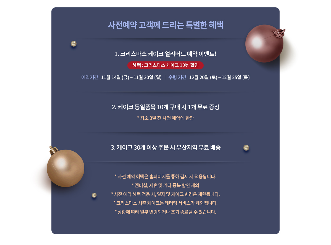 촉촉한 블루베리 쉬폰 시트에 블루베리를 배합한 크림을 바른 상큼하고 깔끔한 맛의 크리스마스 스페셜 블루베리 쉬폰 케이크