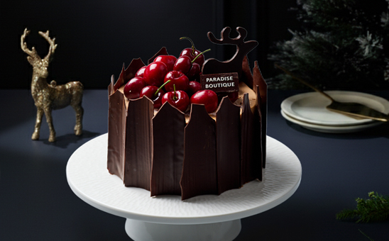 부드러운 초콜렛 시트 체리와 생크림, 초콜릿의 풍미가 더해진 크리스마스 스페셜 블랙포레스트 케이크