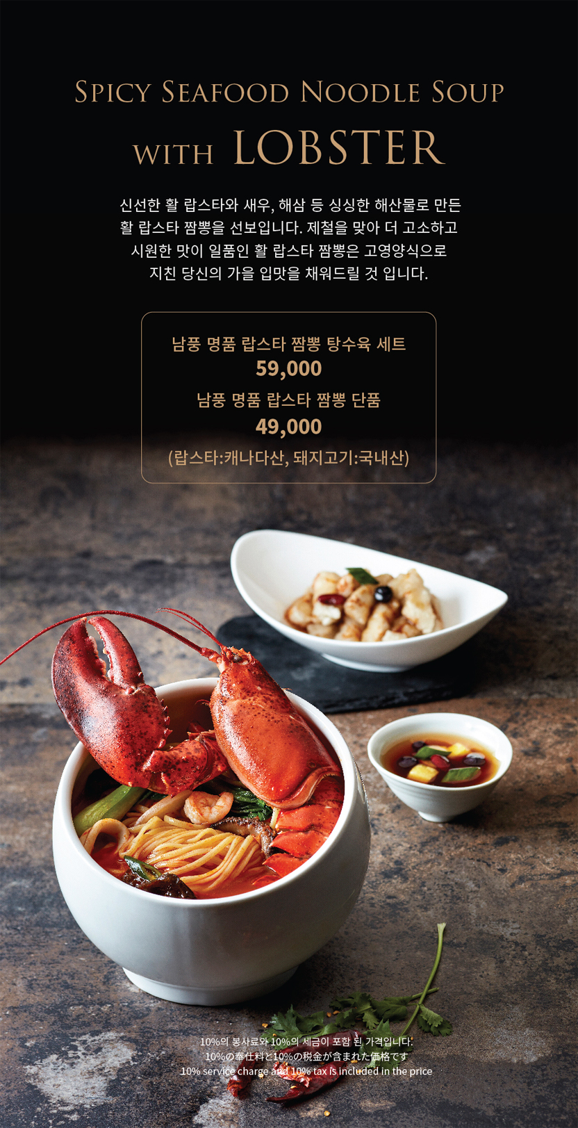 신선한 활 랍스타와 새우, 해삼 등 싱싱한 해산물로 만든 활 랍스타 짬뽕을 선보입니다.