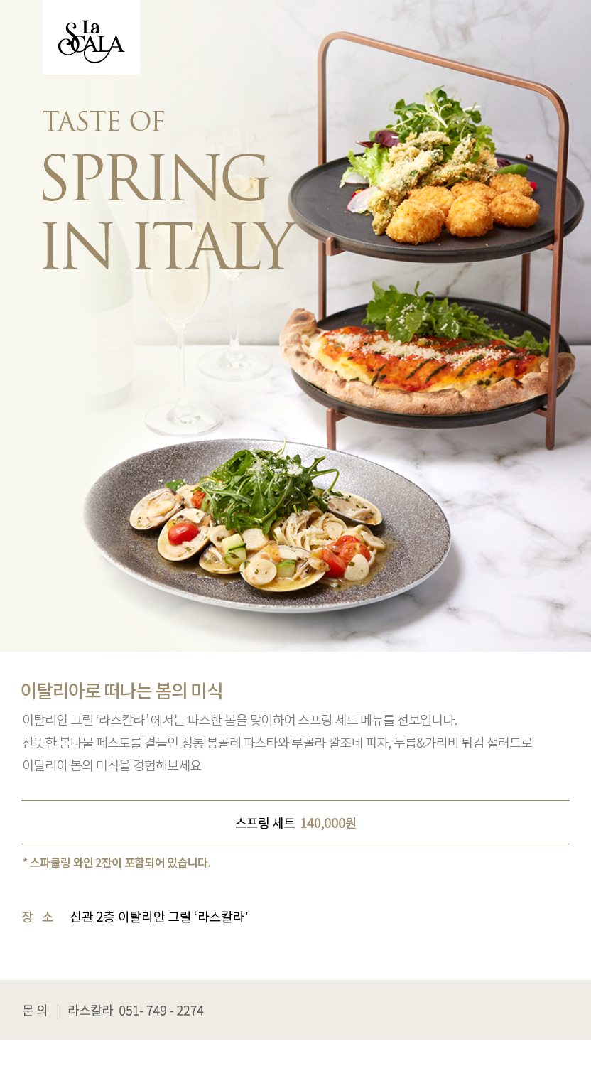 산뜻한 봄나물 페스토를 곁들인 정통 봉골레 파스타와 루꼴라 갈조네 피자, 두릅 & 가리비 튀김 샐러드로 이탈리아 봄의 미식을 경험해보세요.