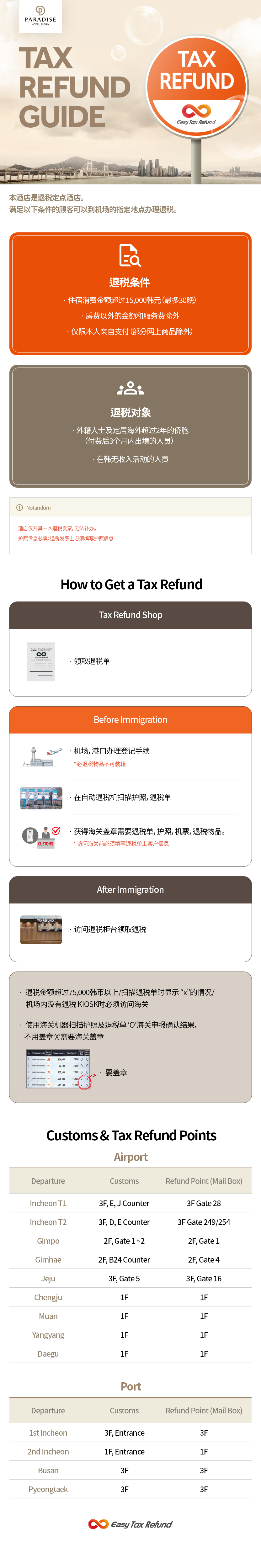 本酒店是退税定点酒店。满足以下条件的顾客可以到机场的指定地点办理退税。