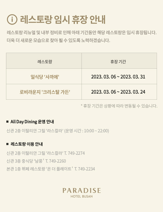 파라다이스 리워즈 멤버십 회원이 되시면 더 많은 혜택을 누리실 수 있습니다.