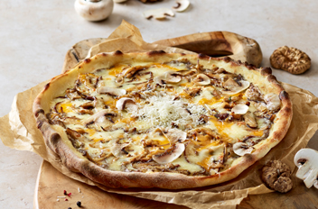 食材はイタリアから空輸で仕入れ。48時間熟成させた生地の上に、ポルチーニ茸とトリュフの風味がいっぱいのイタリアン正統ピザ。