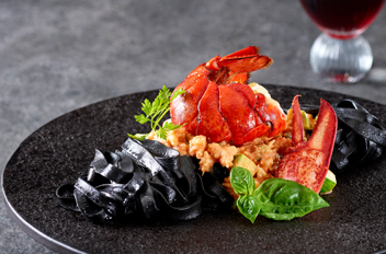 イカスミを練り込んだフェットチーネの生麺に、濃厚なビスクソース、ロブスター、新鮮なシーフードが入ったシグネチャーパスタ。