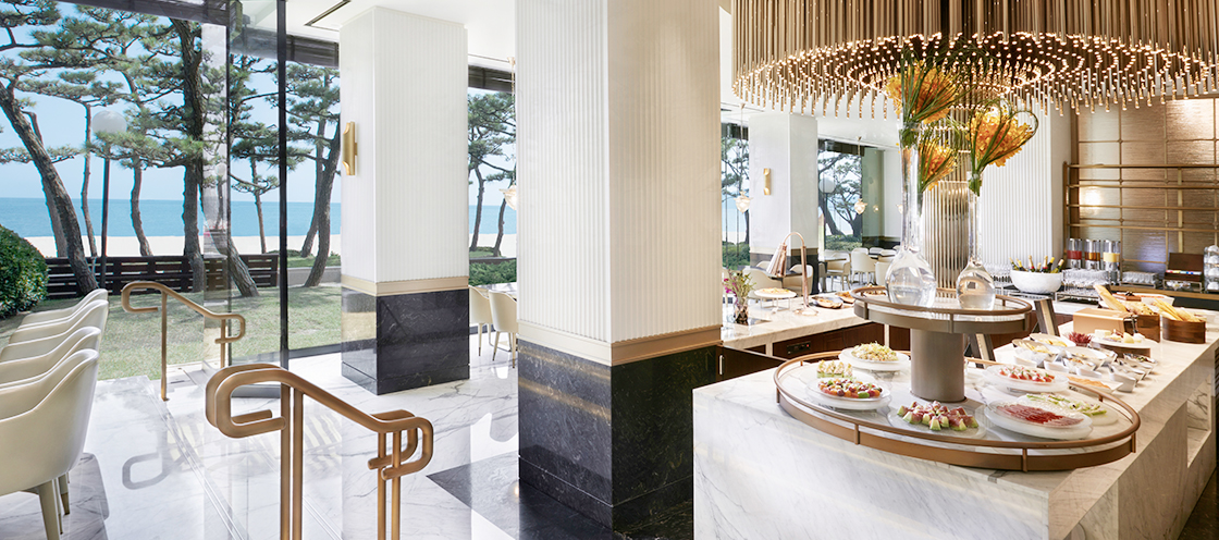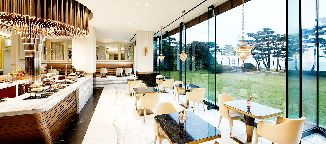 ‘Romantic Elegance’라는 세미 클래식 컨셉을 현대적으로 재해석한 독창적인 건축과 디자인을 갖춘 신관 라운지 파라다이스는 이전 보다 더 프라이빗 해지고 럭셔리한 분위기를 선사합니다. 탁 트인 해운대 바다와 싱그러운 자연 빛 가득한 해변정원 전망으로 고요한 자연 속에 머무르고 싶은 이들에게 완벽한 휴식을 제공합니다.