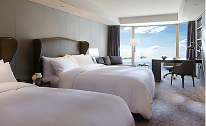 * 파라다이스 키즈빌리지 : BMW 키즈 드라이빙 / PLAY LAB / HABA 키즈 라운지 / 웅진 북클럽 * 조식상품 선택시 : 뷔페 "온더플레이트" 조식 ( 성인 2인 ) 제공 * 신관 프리미엄 디럭스 오션 트윈 이미지컷 입니다.