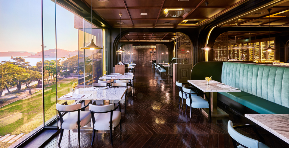 천혜의 자연경관인 해운대 바다와 해변 그리고 초록빛 가든의 멋진 경치를 감상하며 미식을 즐길 수 있는 공간