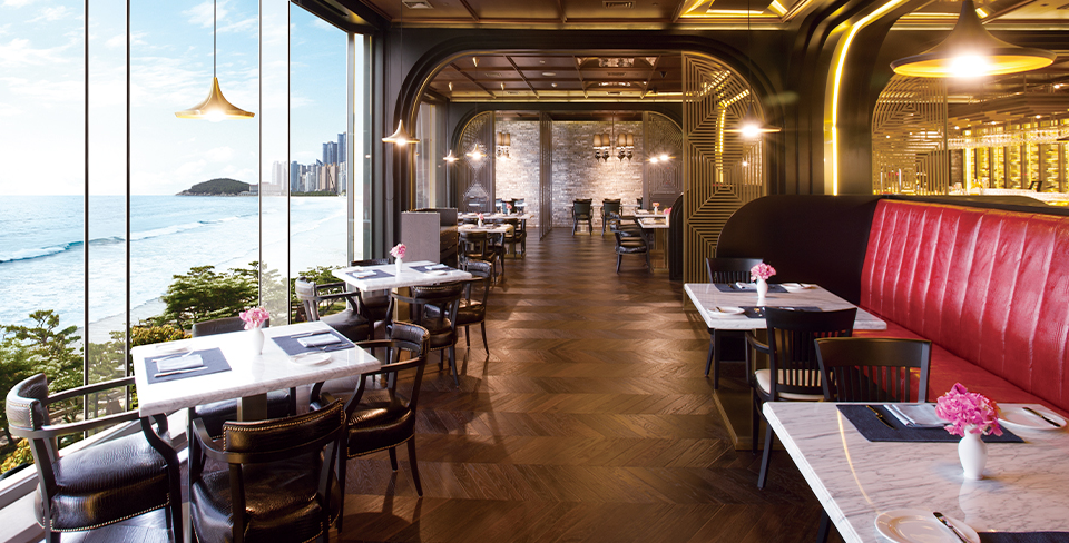 천혜의 자연경관인 해운대 바다와 해변 그리고 초록빛 가든의 멋진 경치를 감상하며 미식을 즐길 수 있는 공간