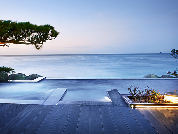 在湛藍的天空下欣賞一望無邊的美麗海景的露天溫泉海洋活水SPA“Cimer”