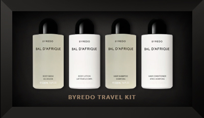 여행의 특별함을 더해줄 발다프리크향의 바이레도 어메니티 4종 KIT를 선물합니다.