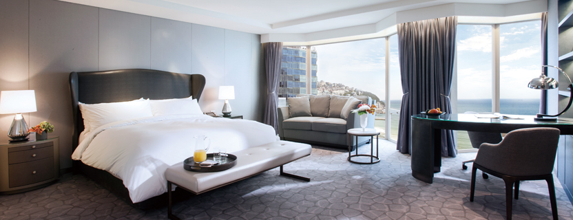 프리미엄 디럭스 오션 킹 객실 해운대 해변의 아름다운 해안선을 만끽할 수 있는 객실