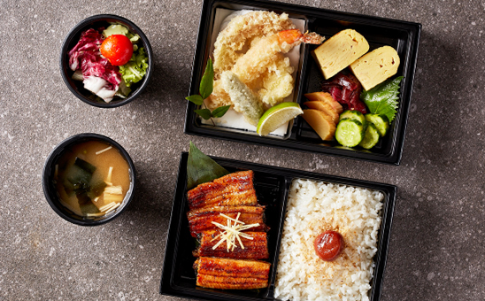일본식 대표 보양식재료 민물장어로 만든 사까에 시그니처 메뉴입니다. 풍미와 식감을 위해 엄선한 사케를 뿌려 부드럽게 쪄 낸 민물장어에 셰프만의 비법 소스를 더했습니다. 일식 모둠 튀김, 샐러드, 장국을 함께 구성해 일본식 도시락의 고급스러운 미를 즐기실 수 있습니다.