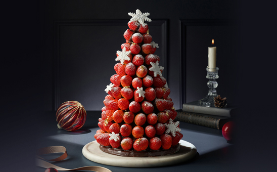 신선한 딸기를 트리 형태로 쌓아올린 부티크 베이커리의 크리스마스 시그니처 케이크