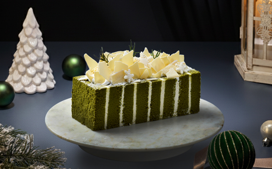 화이트 초콜렛이 더해진 부드럽고 진한 녹차 치트에 동물성 생크림을 넣어 담백하면서도 깔끔한 크리스마스 스페셜 녹차 초콜릿 케이크